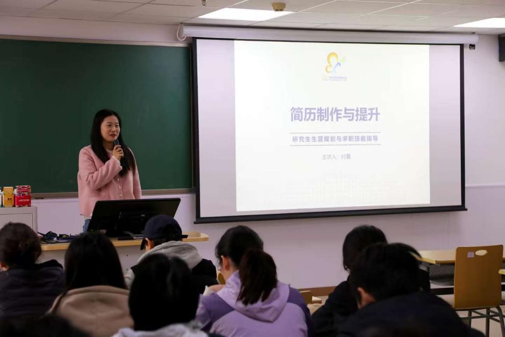 为进一步帮助园区研究生新生切实提高生涯规划意识,树立职业发展目标,11月6日,学校周四工作坊第8期“简历制作与提升”讲座在沙河创新园区教学楼412举办。本次活动由学生就业指导中心与沙河创新园区联合主办,就业课程专任教师付晨主讲,四十余名研究生新生参加活动。